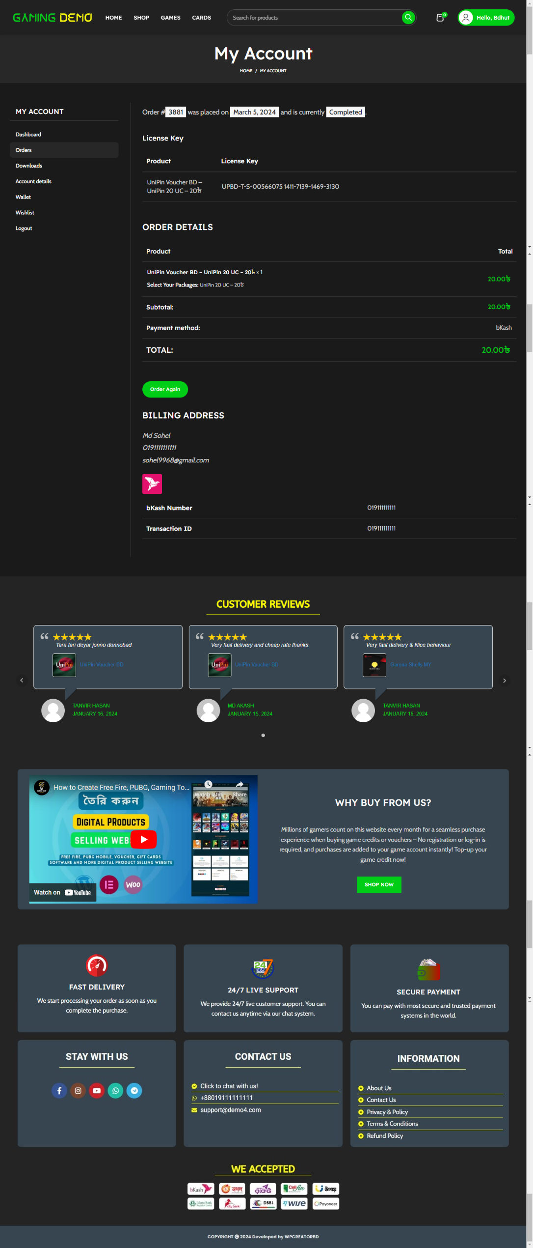 Note: You have to buy a domain & web hosting account to use this code/site. We will not provide domain and web hosting with this code. And if you don’t have any ideas about the gaming topup, visa, and gift card selling business, please don’t buy this code.